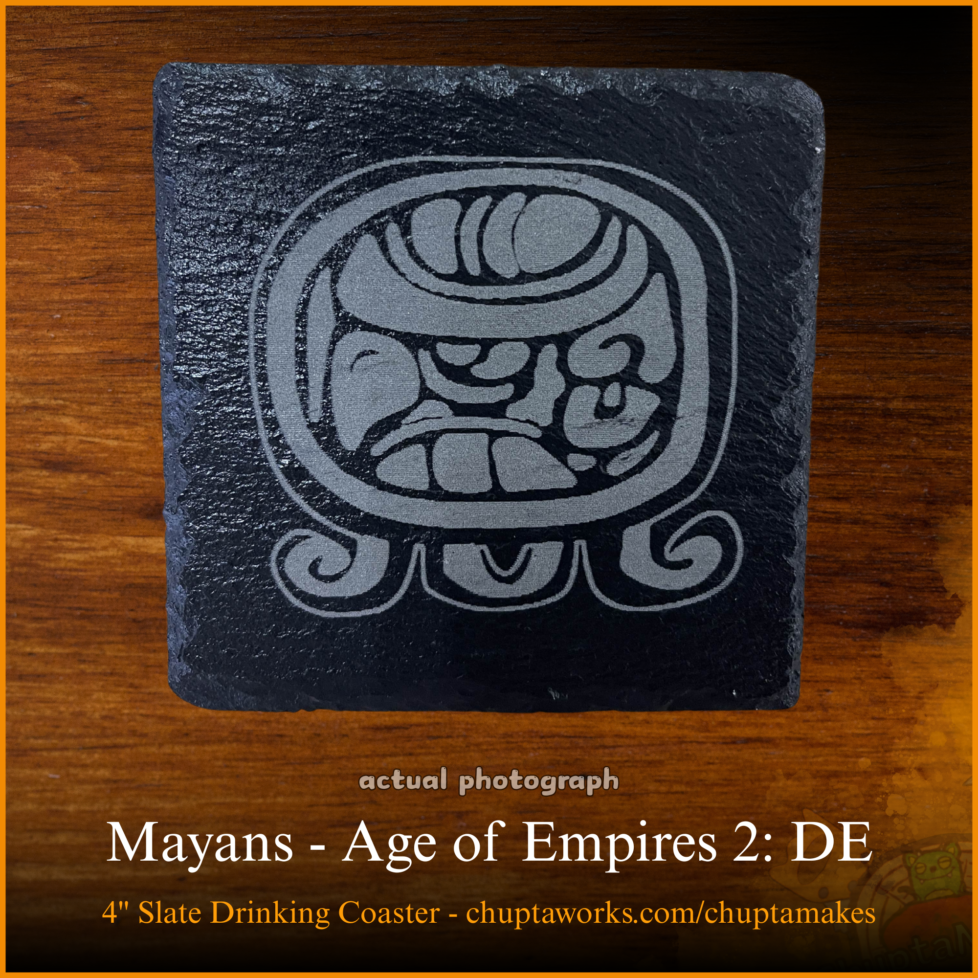 Each slate coaster is engraved by Chuptaburger using a specially designed laser upon order. Thus, each one is unique!